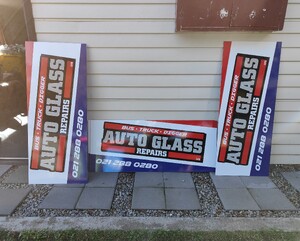 Flat panel signs are made with a rigid panel that has vinyl graphics on one or both sides.
